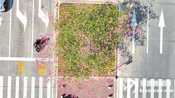 記者看到,在源城區鱷湖公園,兩旁道路披上粉妝,綿延數百米的異木棉絢爛綻放,為城區增添了一抹亮色。姹紫嫣紅的異木棉花吸引了不少市民群眾駐足欣賞、拍照打卡。