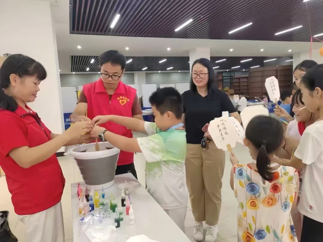 在文化傳承體驗(yàn)區(qū),“醒獅手工燈籠制作”與“非遺漆扇體驗(yàn)”尤其引人注目,吸引了不少親子家庭參與。在志愿者認(rèn)真指導(dǎo)下,家長(zhǎng)與孩子們默契配合,全神貫注地投入到創(chuàng)作中。當(dāng)一個(gè)個(gè)栩栩如生的醒獅燈籠在手中點(diǎn)亮,當(dāng)一把把獨(dú)一無二的漆扇在指尖綻放絢麗的色彩,孩子們臉上綻放出燦爛而欣喜的笑容,家長(zhǎng)則在親密協(xié)作中感受到濃濃的溫情。