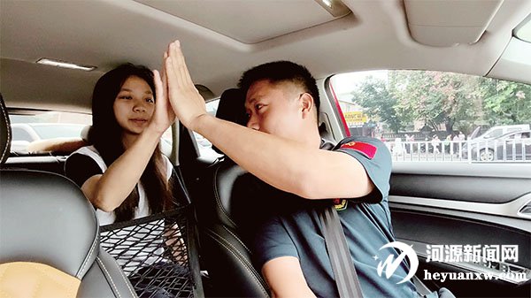 “高考愛(ài)心直通車”車主與考生擊掌。本報(bào)記者 劉奇峰 曹志成 李馨 謝夢(mèng)君 梁小鴻 實(shí)習(xí)生 鐘昊哲 攝
