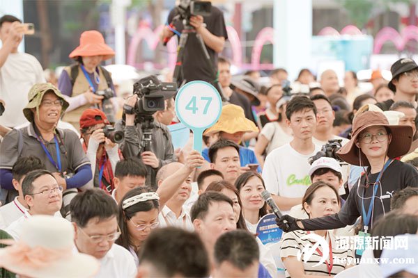 一嘉賓舉牌參與頭魚拍賣。記者 劉奇峰 攝