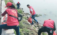 志愿者清理岸邊垃圾