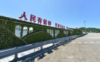 位于市區迎客大橋的橋頭公園,片片綠色入畫來。300 米可見綠,這是我市創建國家園林城市引人注目的成效。