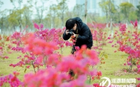 春光蕩漾的時節,河源大地繁花似錦,姹紫嫣紅。市區客家文化公園游人如織,山頭上一大片的玫紅勒杜鵑明媚動人。